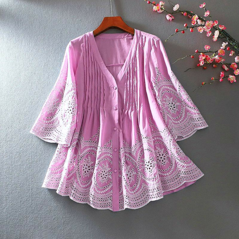 Vintage Ethnic Heavy Chikankari Ruffle Cotton Tunic For Women